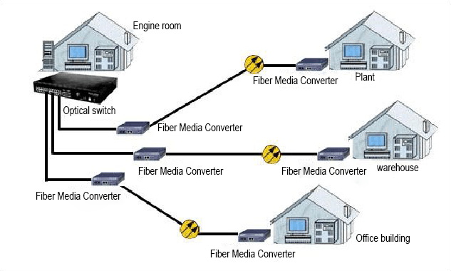 في الأساس، جهاز إرسال واستقبال الألياف الضوئية يكمل فقط تحويل البيانات بين الوسائط المختلفة، والذي يمكنه تحقيق الاتصال بين اثنينمفاتيحأو أجهزة الكمبيوتر في نطاق 0-120 كم، ولكن التطبيق الفعلي لديه المزيد من التوسع.